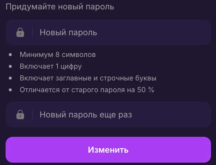 - использовать сложные пароли длиной от 8 символов;