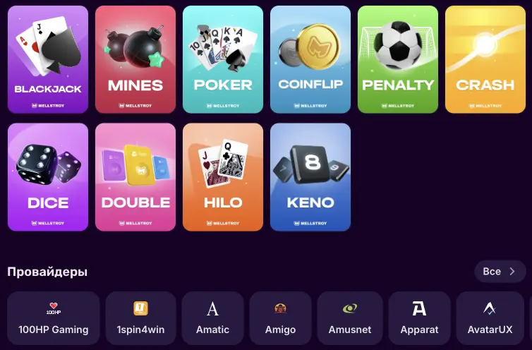 Коллекция слотов Мелстрой Казино включает контент от ведущих студий, известных своими лицензионными играми и высоким RTP. На сайте собраны разработки более чем 50 провайдеров, каждый из которых предлагает собственный стиль, бонусные функции и визуальные эффекты.